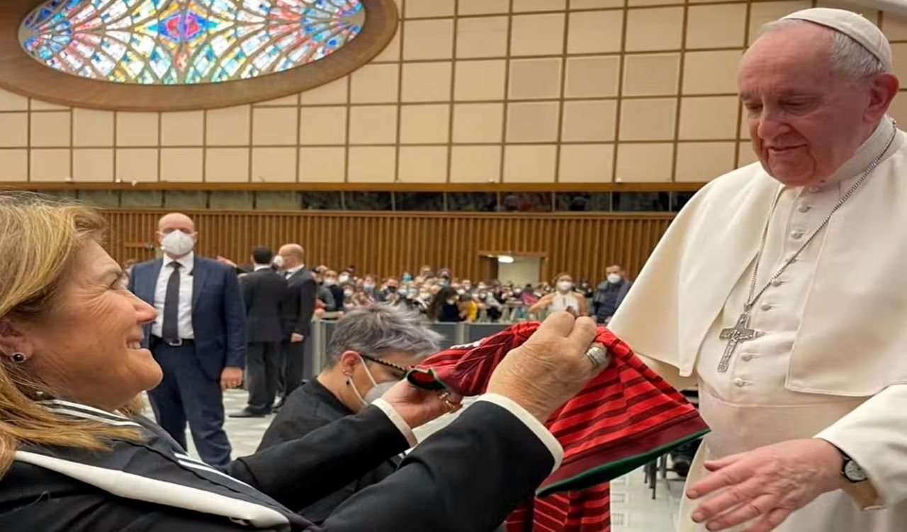 Da: Redação – Por: Jogada10 O Papa Francisco, que é argentino e notório torcedor do San Lorenzo, recebeu um presente especial – de um “rival” – nesta quarta-feira (9/2). A mãe de Cristiano Ronaldo, Maria Dolores Aveiro, 67 anos, foi ao Vaticano para participar da Audiência Semanal na Sala Paulo …