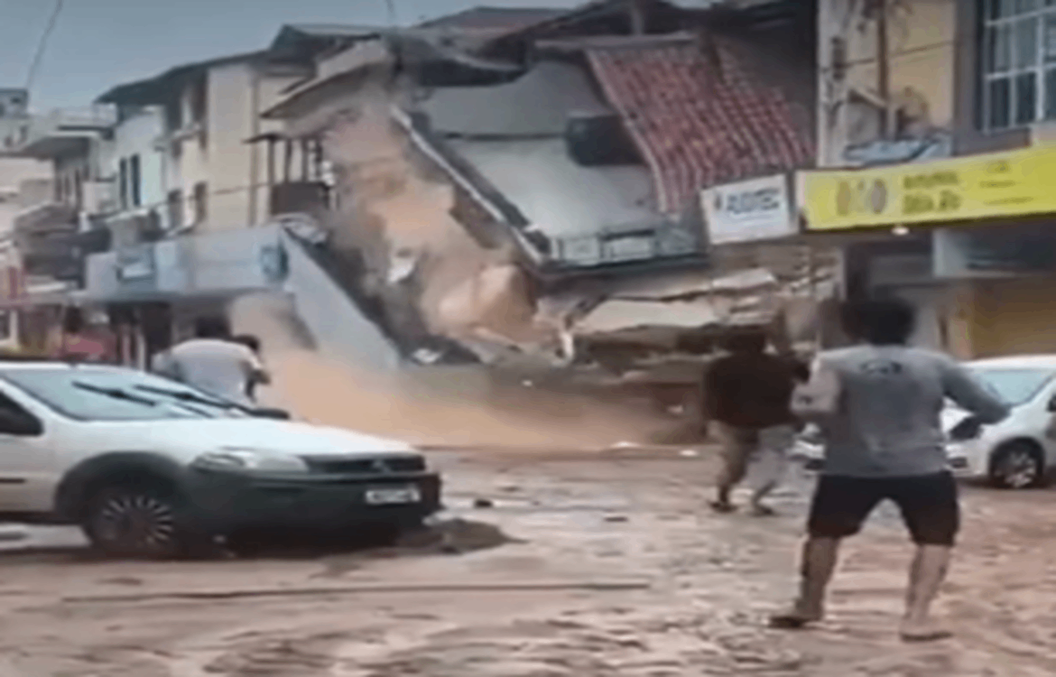 Imagens impressionantes gravadas por moradores de Ubá, na Zona da Mata, em Minas Gerais, mostram o momento em que um prédio desaba, nesta terça-feira (24/2), após as fortes chuvas que atingiram o município. Ao menos Seis pessoas morreram em decorrência da tempestade.